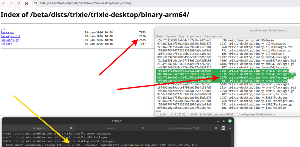 I confirm that the update has not been working for several days. Your repositories are broken, sizes in InRelease do not match sizes in subbranches. The file has an unexpected size (10351 != 8303). Perhaps the mirror is synchronizing? [IP: 65.21.120.247 80] Mirror synchronization has been going on for about a week now!? -