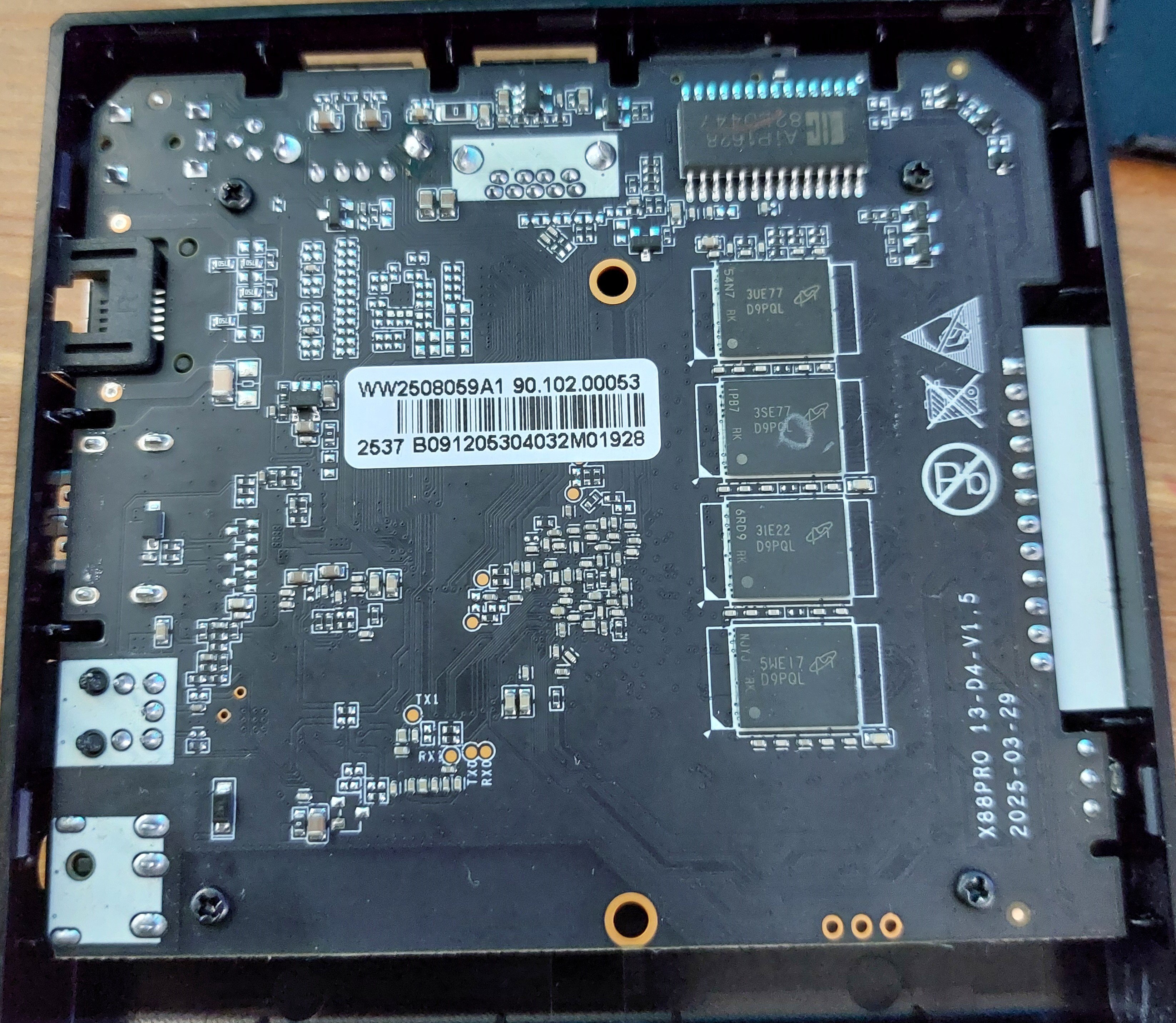 @Nick A hi brow, I'm using the image shown on page 2. The one you showed to another user with the same motherboard ik316-emcp_v1.0. https://github.com/NickAlilovic/build/releases/download/20250306/Armbian-unofficial_25.05.0-trunk_X96q-lpddr3-v1-3_bookworm_edge_6.12.11_xfce_desktop.img.xz The only difference I noticed is the emcp IC; in my version it's a Kingston. Here are some new photos. I really believe the eMMC block is damaged, but the RAM is still working. Or it has a cold solder joint. That's why it's not detected in Armbian, and it's not possible to install the stock firmware directly. If you have/or want or would like to run any tests, I am available. Thank you in advance for your support. I'll use it from the SD card. I'll just try to fix the acceleration issue. But for my purpose, it already works well as it is. Purpose: Remote access behind a dual CGNAT, to control a 4G CPE, a router, and an NVR in a rural area. The NVR has normal access if connected to the cloud service, but I prefer not to use it. The router and CPE are not accessible, and the IPv6 address changes constantly. Thank you again.