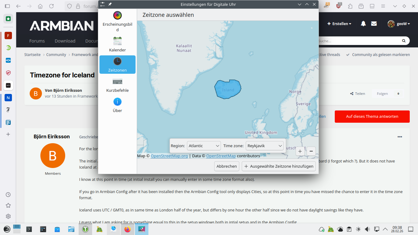 Armbian config is just a wrapper to system tools that are dealing with this. We only change hardware related packages, the rest is stock Debian / Ubuntu. Is this problem solved somehow in Ubuntu? Probably the core of issue is originating from here: https://www.iana.org/ "Time zone of Iceland in Africa?" https://lists.iana.org/hyperkitty/list/tz@iana.org/message/QKQ27H23CTLFGJAQXJ24IVLRLQXHRLUA/ Interesting problem ... - Today